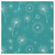Trendy floral fabric patterned with hand drawn white Summer dandelion flowers on a teal blue background