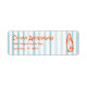 As you see this unique and elegant blue and orange baby on board baby shower return address label has a well designed template. With orange hand drawn surf board and hand written name and address in orange. All on light blue watercolor stripes background. Which you can customize easily by clicking on the personalize button.