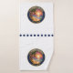 It was advertised as NAVY blue and the color sent was greenish blue. I am disappointed in this product. Quality and printing are great as are all my other orders. As you can see in picture the tea towel on right is perfect, hand towel not so much! Print was awesome and just as ordered