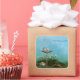 two cute birds flirt to a water fountain - blue butterflies fly around it - Fill in your information in the template. Or delete for no text. Click on Customize to change font size, style, and colour