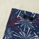 Summery monogrammed beach towel features a bursting fireworks pattern in patriotic red, white and blue, with your single initial monogram centred at the bottom in coordinating navy blue.