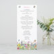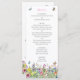 This summery yet elegant menu features a modern and bright botanical design of colourful watercolor wildflowers with butterflies, bumble bees and ladybugs.