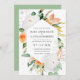 Modern botanical hand-painted wedding invitation featuring watercolor hexagon geometric frame of flowers, eucalyptus leaves, orange slice, and foliage in an fresh palette of white, ivory orange, green and pink hues framing your names and wedding details.