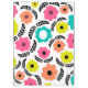 Modern and bold flower pattern in summer colours with black leaf decoration.