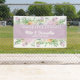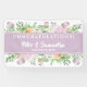 Summer Flowers Wedding Congratulations Banner designed with soft watercolor floral clusters in purple, pink and yellow, this banner includes the Bride and Groom's First Names and Wedding Date in white text on a purple background. To personalize, simply insert your text into our easy template, replacing the sample names and date.