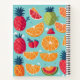 T-shirt with vibrant illustrations of summer fruits such as watermelon, pineapple, or citrus. bright and juicy colours,intensel colours ,kawaii,conture,White background,You can gift it to someone close to you, big or small