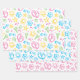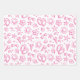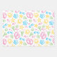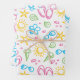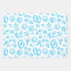 This set of gift wrap features a fun print that says summer! Done in bright shades of green, yellow, pink and turquoise, the print features sun, ice cream cones, flip flops, sunglasses, sea shells, stars and beach stones on a white background. One sheet each in pink, blue and multi.