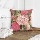 Spring summer rustic beautiful big bright floral bouquet in shades of coral red, blush pink, dusty rose and green on a solid light red background on the back side making an elegant trendy vintage chic decorative throw pillow. Perfect to bring classic nature accents in your home!