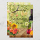 A summer picnic party invitation featuring fresh fruits and cocktails with sunflowers and tree branches. Beautiful for a birthday, company picnic, a family reunion or other outdoor gathering.
