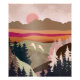 An abstract landscape with unique colours and textures showing a nature landscape with a rising sun and two geese in shades of orange, beige, brown and pink.