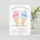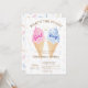 Make your baby's gender party unforgettable with this modern summer ice-cream invitation. The design features beautiful watercolor pink and blue ice-cream cones on a sprinkle background making it both stylish and charming, while the phrase "What's the scoop?" adds a playful element to the card. Use the design tools to customize the text, font and colours! Also available as digital download.