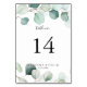Summer Green Eucalyptus Foliage Wedding Table Number