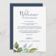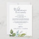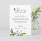 These summer greenery welcome letter & itinerary cards are perfect for an elegant midsummer wedding. The botanical design features a lush arrangement of painted watercolor eucalyptus, greenery, and green leaves with subtle sprigs of blush pink blossoms. The front of the card features a welcome letter and the back of the card features the wedding itinerary. These notes are perfect for destination weddings and hotel guest welcome bags.