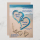 summer hearts beach ocean blue wedding invitation