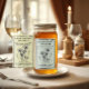 2 x 3" honey label with realistic bee and aster. Dashed border in a grey adds an old-fashioned touch.