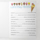 A cute and colourful ice cream illustration design with bright scoops of ice cream in sugar cones scattered around the edge of the invite and rainbow confetti forming a border around your beautiful Childs photo. The outside flap thanks your guests for joining you and the inside has three fun games to play - baby bingo, word scramble and let's play firsts
