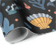 Vibrant seashells and coral on black summer kid's birthday party gift wrap for a summer pool party birthday.