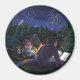 Starry Night art by Traci Van Wagoner print, posters, accessories, and gifts features our original painting of two kids and their big, black dog camping out under the stars reading a fantastical book around a camp fire about knights and dragons. The magic of the story is swirling up into the starry sky to show a knight and a dragon in an eternal nighttime dance of stars. Enjoy a summer night camp out in the mountains.