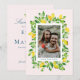 This wedding invitation collection suite is beautifully designed with watercolor illustrations of fresh lemons and leaves. The mixed colours of the watercolor create a calming and elegant backdrop for the design suite. The fonts used for the text are sleek and refined, adding a touch of sophistication to the design.