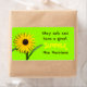 Lime green sticker with a big yellow daisy flower and custom text message from a teacher to students. Wrap around a candy bar as an end of school year treat.