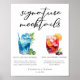 This chic signature mocktails menu poster features simple black typography above 2 cute drinks and their ingredients for your summer wedding bar. A Blue Hawaiian Sunrise drink and non-alcoholic Sangria add a cool flair to your bar menu. Complete with the couple's names and date for their reception.