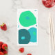 This paper napkin exhibits three circular blades in green and turquoise over the white surface.