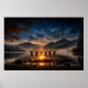 Holiday night: jumping and dancing around, beautiful alpine lake environment