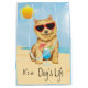 It’s a dog’s life! Be cool and celebrate the dog days of summer with this cute Norwich Terrier wearing sunglasses and relaxing with a drink.