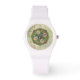 Art Nouveau arches surround the stained glass inspired layers of this mandala, featuring fireworks, sunflowers, seashells, suns, and storms in bright colours to fully embody the feelings of activity that come with summer. This watch is available in a variety of sizes, colours, and styles, including sizes for both kids and adults.