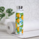 Features an orange tree garden design on water bottles