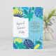 A summer party invitation with tropical leaves against a light blue background. Perfect for any summer celebration. <br/><br/>The card is easy to customize with your wording, font, font colour, paper shape options and choice of six paper types.<br/><br/>Not exactly what you're looking for? All our products can be custom designed to meet your needs at no extra charge.<br/><br/>Simply contact us at askcottonlamb@gmail.com.<br/><br/>Coordinating products available: Just ask us!"