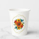 Summer party paper cups with a sunflower floral theme and gold geometric frame