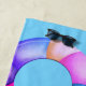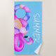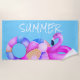 Cute summer pool party beach towel. Fun vibrant watercolor design. Pink flamingo,beach ball and pool ring. Great for pool or beach.