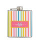 Summer Rainbow Stripes Monogram Script Hip Flask