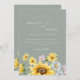 Summer Sage Green Sunflowers Monogram Wedding Invitation