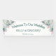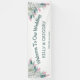 Summer Sage Wedding Banner designed with clusters of soft pastel Pink and Sage Green floral, with Sage Green text on a white background. The text includes: Welcome To Our Wedding, and The Bride and Groom's Names. To personalize, simply insert the Bride and Groom's Names into our easy template, replacing the sample text. Be sure to view the complete Summer Sage Green Floral Wedding Collection for matching stationery and accessories.