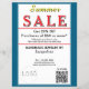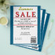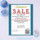 Jewelry or any business type supplies. Ocean blue and white background. Insert Sale price and date details. Upload Your Logo, or delete to leave area blank. Insert Name and Website or other contact QR Code. Summer written in yellow script. Sale written in large red typography. Thank You is written inside large white heart on backside. Original Design by TamiraZDesigns.