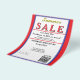 Jewelry or any business type supplies. Patriotic red, white and blue background. Insert Sale price and date details. Upload Your Logo, or delete to leave area blank. Insert Name and Website, Social Media Handle, or other contact QR Code. Summer written in yellow script. Sale written in large red typography. Thank You is written in white inside large red heart against deep blue background on backside. Original Design by TamiraZDesigns.