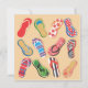 Super cute beach flip flops, shells and sandals in a variety of colours and patterns on a sandy beach welcome your guests to this Summer Beach party. Great for any beach or summer event. Hand drawn illustration by McBooboo.