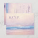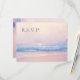 Cette belle carte RSVP Response de mariage de plage présente un magnifique paysage de la soirée d'été d'une peinture à l'huile originale avec un ciel doux rose et violet brumeux ensoleillé et une vague d'eau turquoise clair cassant sur une plage de sable. Parfait pour votre mariage à thème de plage.