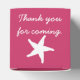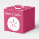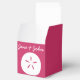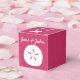 Give your guests, bridesmaids, groomsmen, or anyone else a special treat with these customizable favour boxes featuring a raspberry pink background with a white sand dollar, seashell, and starfish on the front, back, and top of the box, respectively. Each of these sides also features some sample text that you can customize for your own summer or beach-themed wedding or event. Be sure to check out the other products in the Summer Seashells in Raspberry set to create a truly coordinated look for your event.