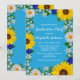Summer blue sky featuring golden yellow sunflowers, daisies, and assorted wildflowers with botanical greenery