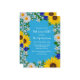 Summer blue sky featuring golden yellow sunflowers, daisies, and assorted wildflowers with botanical greenery