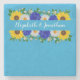 Summer blue sky featuring golden yellow sunflowers, daisies, and assorted wildflowers with botanical greenery