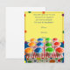 This fun modern party invitation has a bright, fun style. The background is yellow at the top and blue below with coloured polka dots. At the bottom is a tray of snowcones in orange, blue, green, and red on a box with more polka dots. There is an orange frame highlighting your customizable text in the centre. This would be a great invite for any summer event, picnic, or party - especially Labour day or Memorial Day!