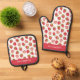 Summer strawberry pattern oven mitt and pot holder set. Customize with your own name or choice of text. Matching items available. Original art from artists own illustrations. Please use the message me button below for help with further customization and special requests. © Zoe Chapman Design