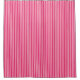 Shower curtain in a pattern of wide and narrow deep fuchsia pink stripes on a light pink background