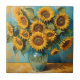 This design shows a vibrant bouquet of sunflowers against a colorful, impressionist background. The sunflowers, with their bright yellow petals and green leaves, emit heat and energy. The blue background is a fine contrast to the warm colors of the flowers, making the whole a harmonious and vibrant composition.