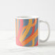 This mug has a nature design of a sunrise made of curvy lines in red, yellow, and orange, a sun, and the sky.