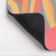 This mouse pad has a nature design of a sunrise made of curvy lines in red, yellow, and orange, a sun, and the sky.
